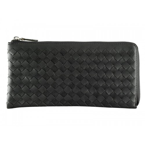 Kožená peněženka na zip Bottega Veneta Intrecciato Nappa Černá