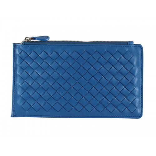 Kožená peněženka na zip Bottega Veneta Intrecciato Nappa modrá