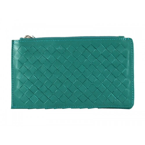 Kožená peněženka na zip Bottega Veneta Intrecciato Nappa zelená