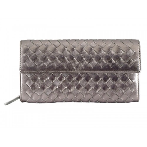 Bottega Veneta Intrecciato Nappa kontinentální peněženka s knoflíkem stříbrně šedá
