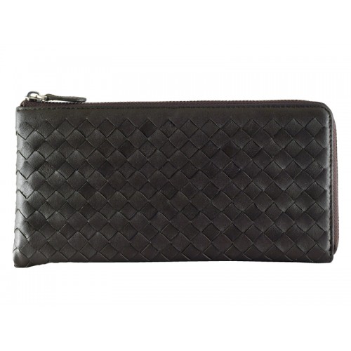 Bottega Veneta Intrecciato Nappa Leather Zip Around Wallet Choco