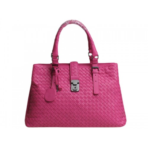 Kožená kabelka Bottega Veneta Roma Intrecciato Hot Pink