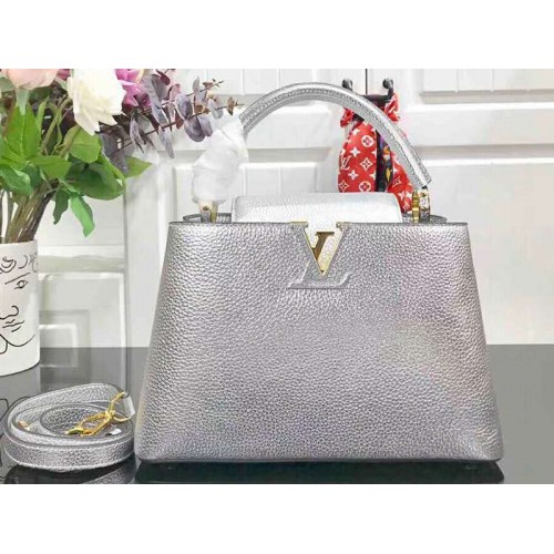 Louis Vuitton Capucines Bb Taurillon Kůže Stříbrná m90472