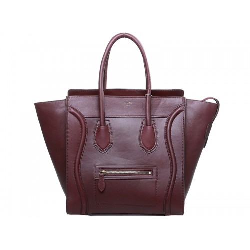 Střední kabelka Celine Luggage Tote z telecí kůže vínové barvy