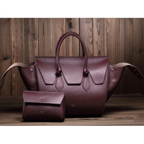 Celine Tie Nano kožená kabelka s horním uchem, vínová