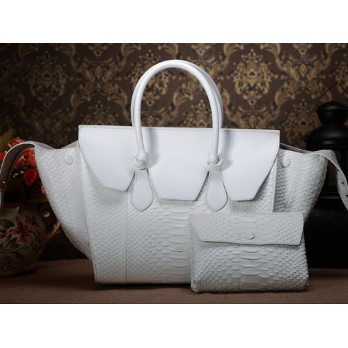Celibes kabelka Tie Nano s horní rukojetí z kůže, bílá, python