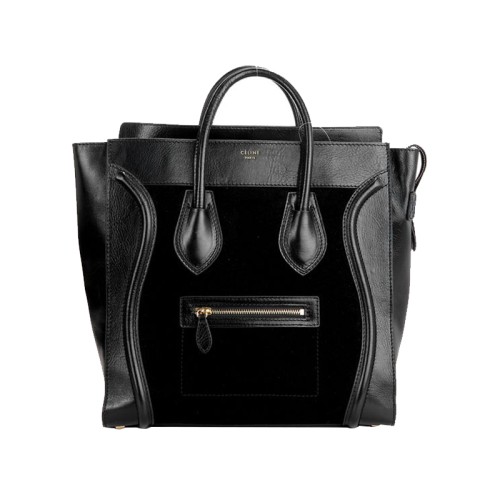 Celine Luggage Medium Tote z telecí kůže, černá/semišová černá
