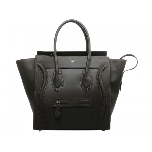 Celine Luggage Medium Tote z telecí kůže tmavě zelené barvy