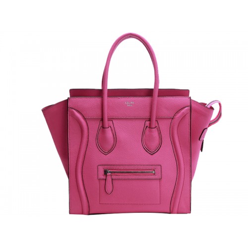 Celine Luggage Medium Tote z telecí kůže fluorescenčně růžové
