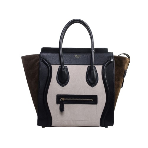 Celine Luggage Medium Tote z telecí kůže světle béžové/semišové olivové barvy