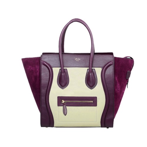 Celine Luggage Medium Tote z telecí kůže světle béžové/semišové vínové barvy