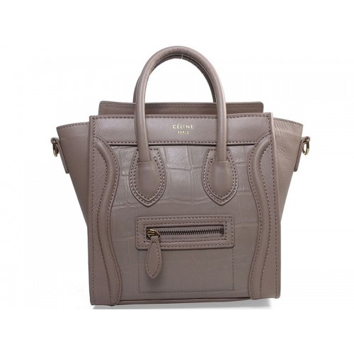 Celine Luggage Mini Tote z telecí kůže khaki s krokodílí kůží
