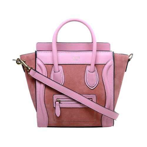 Celine Luggage Mini Tote v růžové/semišové barvě telecí kůže