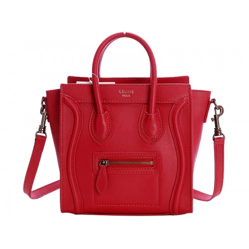 Celine Luggage Mini Tote z telecí kůže červená