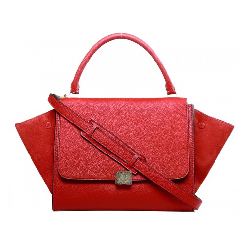 Celine Trapeze ramenní taška z telecí kůže se semišem červená