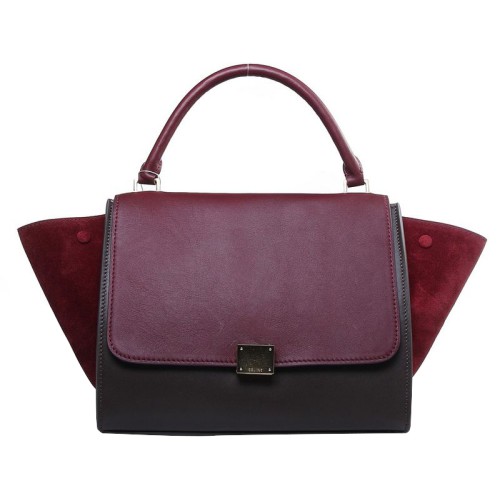 Celine Trapeze ramenní taška Multicolor z telecí kůže vínová/hnědá/vínová