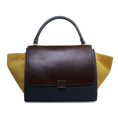 Celine Trapeze ramenní taška Multicolor telecí kůže vínová/šedá/semišová žlutá