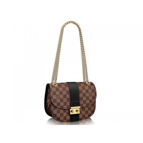 Skvělá taška z dne na večer, Wight míchá emblematický Damier Ebè plátno s velkorysým pruhem barevné kůže Cuir Taurillon pro snadnou eleganci. Tenký zlatý řetízek a podepsaná očka a jemný zámek dále povzbuzují tuto studii u příležitostných šik.