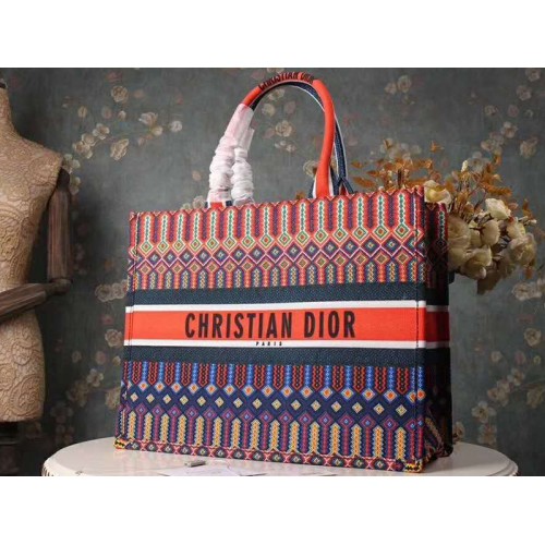 Dior Book Taška na tašku z vícebarevného vyšívaného plátna.
