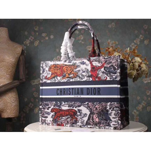 Dior Book Taška z plátna vyšívaná vícebarevným a modrým motivem Toile de Jouy.
