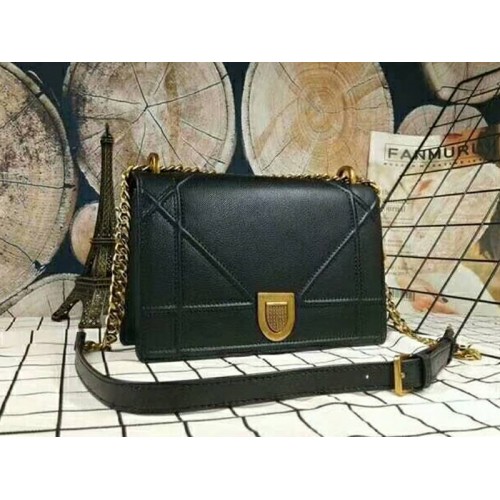Černá kabelka Dior Diorama z telecí kůže ve věku zlata s hardwarem d1771