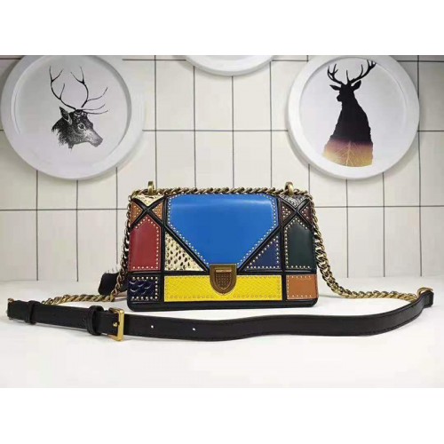 Kabelka Dior Diorama z telecí kůže v patchworkové vícebarevné modré barvě