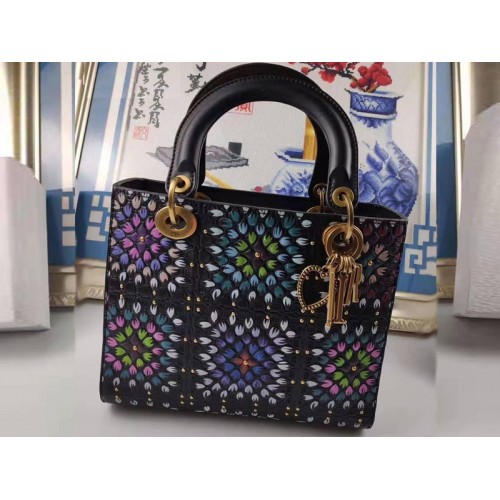 Dior Lady Dior v černém provedení s reliéfní telecí kůží a ruční malbou
