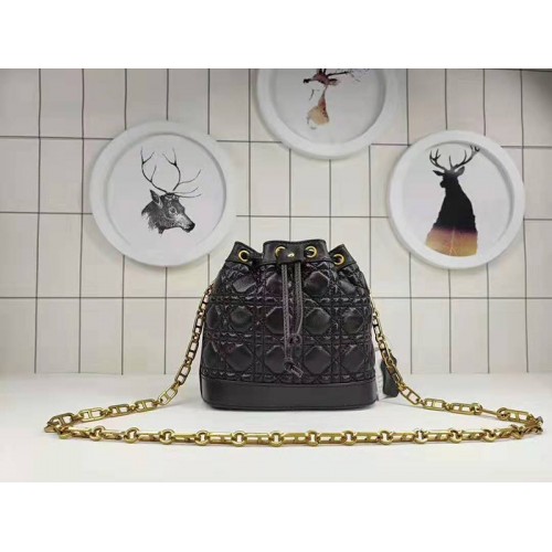 Mini Miss Dior kbelíková taška z černé pružné jehněčí kůže 'Cannage'.