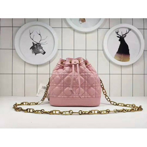 Mini Miss Dior kbelíková taška z růžové pružné jehněčí kůže 'Cannage'.