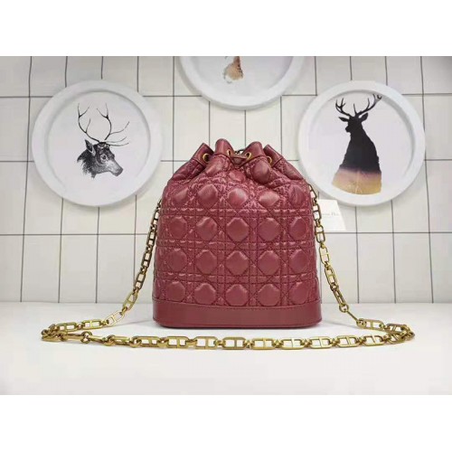 Kbelíková taška slečny Dior z jehněčí kůže pružné 'Cannage' vínové barvy.