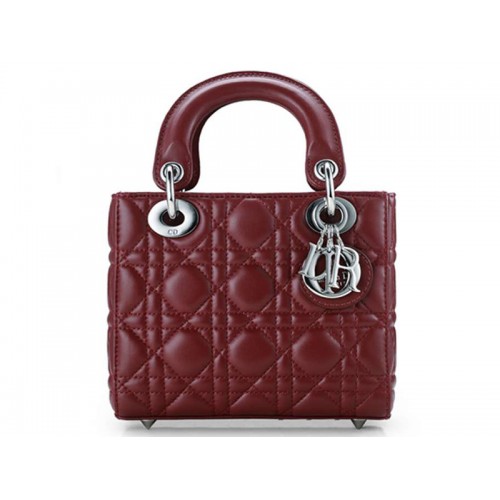 Kožená kabelka Dior Nano s stříbrnými kováním a vínovo-stříbrnou úpravou