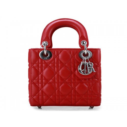 Kožená kabelka Dior Nano s stříbrným kováním a červeným potiskem