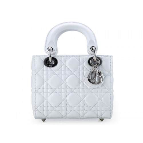Kožená kabelka Dior Nano s stříbrným kováním a bílou podšívkou