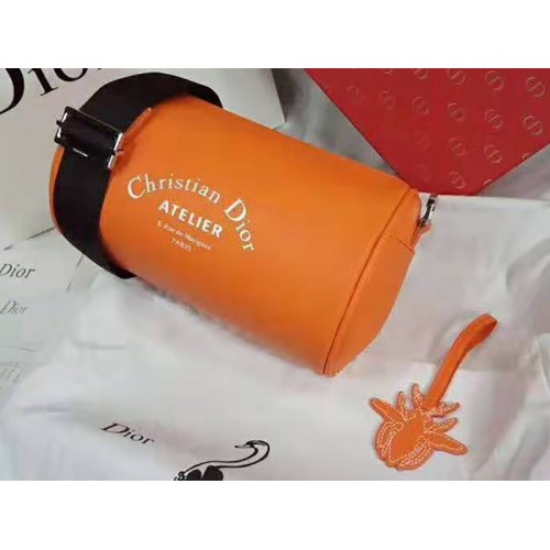 "Roller" sáček z džínové oranžové zrnité telecí kůže s " Christian Dior Atelier" print.