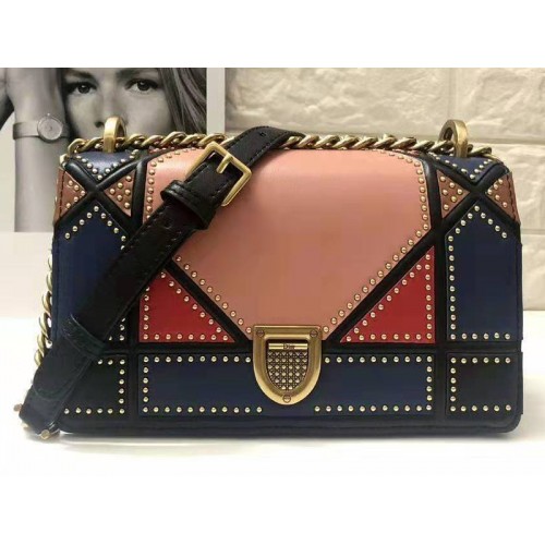 Vak na diorama v patchworku z jehněčí kůže, vícebarevný motiv s hřeby velký motiv 'Cannage'.
