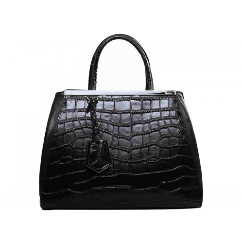 Fendi 2jours telecí kůže tote bag krokodílí černá