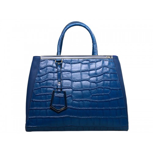Fendi 2jours telecí kůže tote bag krokodílí modrá