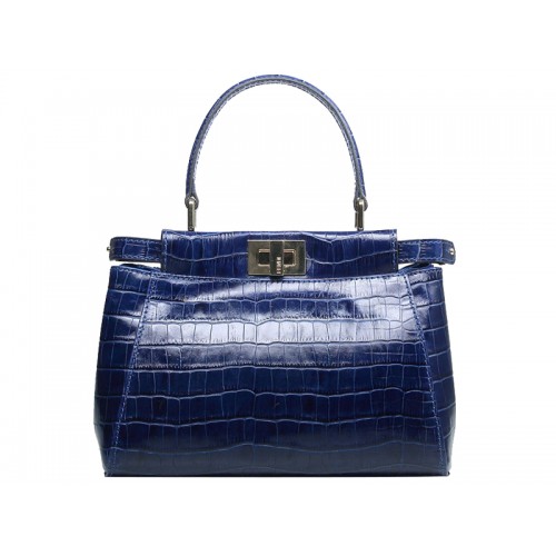 Kabelka Fendi Iconic Mini Peekaboo z krokodílí kůže modré barvy