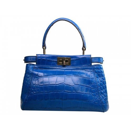Kabelka Fendi Iconic Mini Peekaboo z krokodílí kůže světle modrá