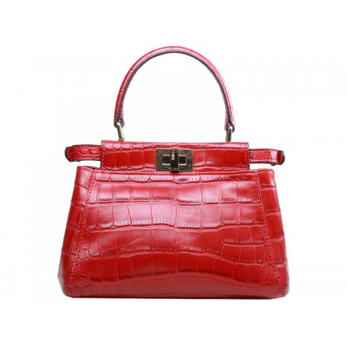 Kabelka Fendi Iconic Mini Peekaboo z krokodílí kůže červená