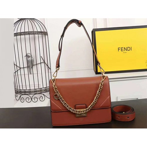 Kožená kabelka Fendi Kan I z telecí kůže hnědá