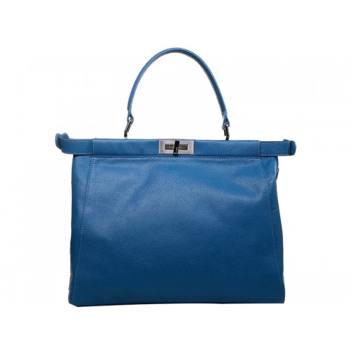 Kožená kabelka Fendi Peekaboo z telecí kůže, horká modrá