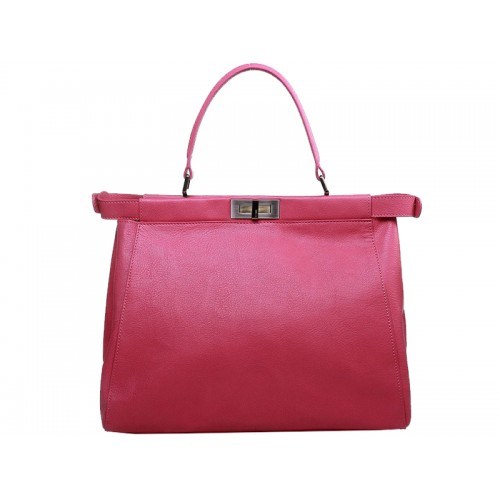 Kožená kabelka Fendi Peekaboo z telecí kůže v zářivě růžové barvě