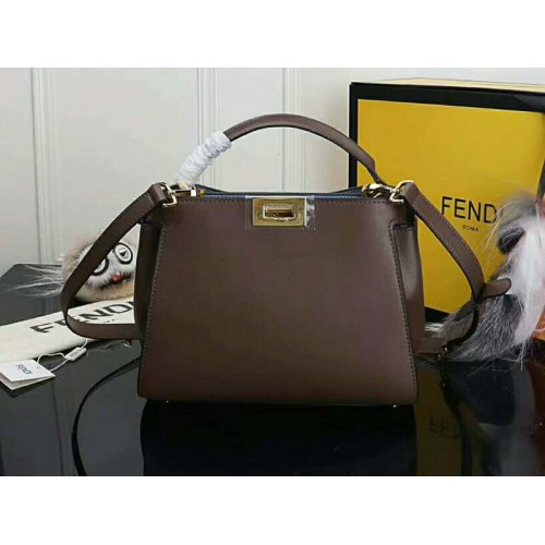 Kožená kabelka Fendi Peekaboo Essential z telecí kůže tmavě hnědá
