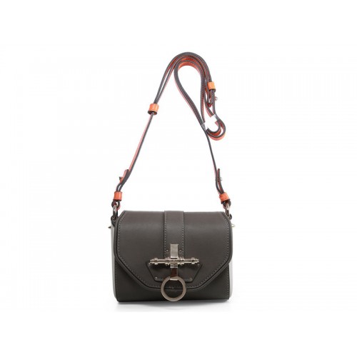 Silvertone 'Obsedia' hardware vpředu a prokluzová kapsa vzadu venku. Nastavitelný plochý kožený popruh s příčným popruhem.