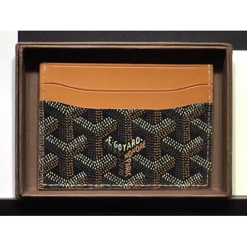 Pouzdro na karty Goyard Goyardine Saint Sulpice černé s hnědým koženým lemováním