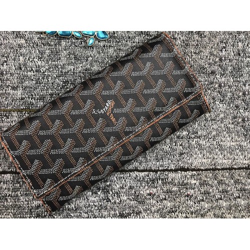 Dlouhá peněženka Goyard Varenne Chevron, černá s hnědým koženým lemováním