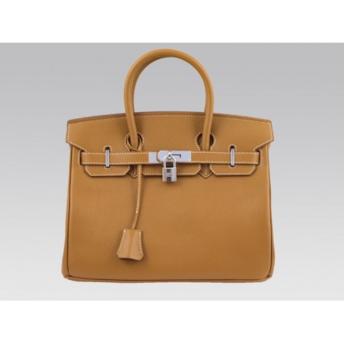 Hermes Birkin 30cm Togo kožená taška v hnědé barvě se stříbrným kováním