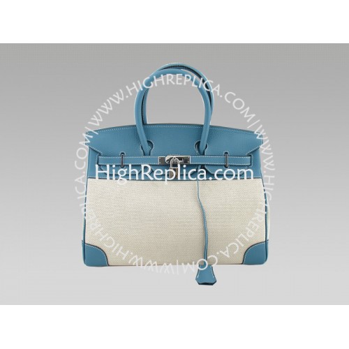 Naše zrcadlová replika Hermes Birkin Bag je vyrobena ze světle modré kůže TOGO (známé, že drží tvar a styl a je odolná proti poškrábání) a Toile. Buďte závistí a zázrakem mnohých, když nesete svou repliku Hermes Birkin!