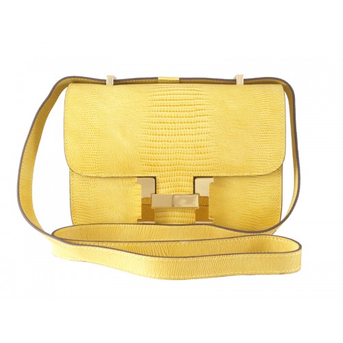 Hermes Constance 23 Jednotlivé Rameno Taška Lizard Kůže Žlutá